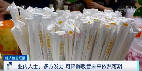 在北京的一家商場,記者走訪多家連鎖飲品門店發(fā)現(xiàn),曾經(jīng)風靡的紙吸管,已經(jīng)很少見到蹤影,一種叫作PLA的可降解吸管占據(jù)了主流。這些吸管的外包裝上標注:PLA吸管也叫聚乳酸吸管,它以玉米、小麥、木薯等植物中提取的淀粉為原料,可以全生物降解。