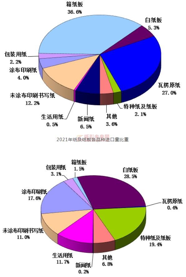 2021年紙及紙板進口1090萬噸,較上年增長-5.55%;紙漿進口3052萬噸,較上年增長-2.65%;廢紙進口54萬噸,較上年增長-92.16%;紙制品進口19萬噸,較上年增長18.75%。