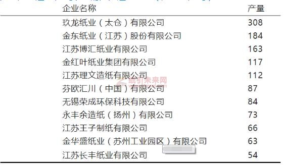 表1產量達50萬噸以上的江蘇造紙企業(產量:萬噸)