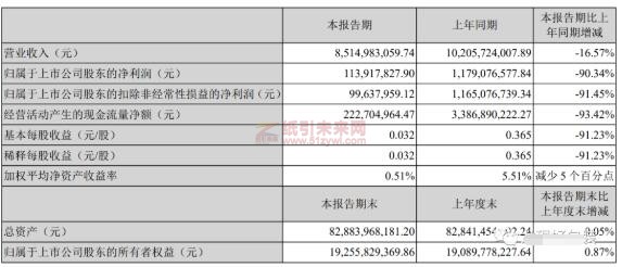 晨鳴紙業一季度營業收入85.15億元,同比下降16.57%,凈利潤同比下滑90.34%至1.13億元。