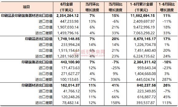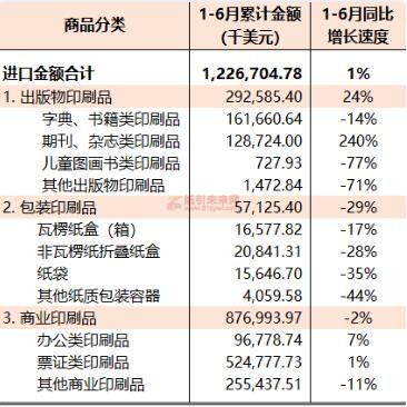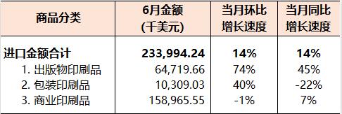 2022年1-6月國內印刷品進出口貿易順差62.25億美元(同比增長24%)。