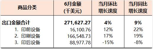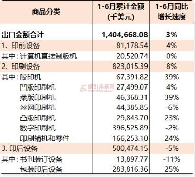 2022年1-6月國內印刷裝備進出口貿易順差4.45億美元(同比增長287%)。