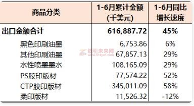 2022年1-6月國內印刷器材進出口貿易順差3.94億美元(同比增長113%)。