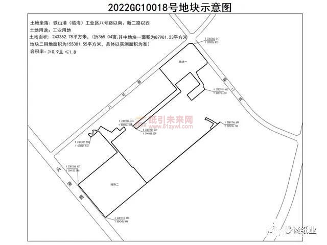 鐵山港(臨海)工業區八號路以南、新二路以西243362.78平方米(折365.04畝,具體以實測面積為準)地塊,成交價9102萬。
