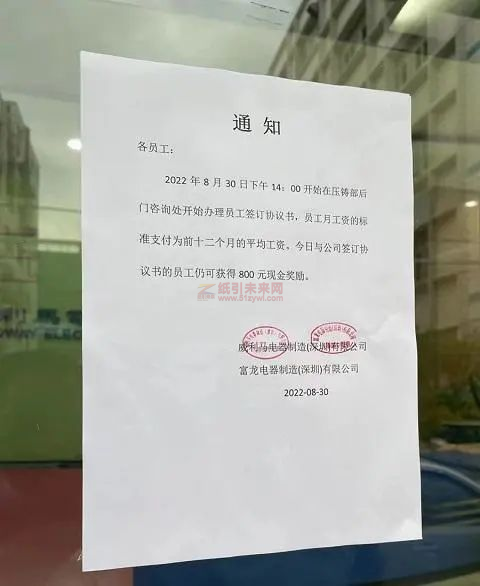 東莞另外一家電子大廠的員工收到公司發的《停工停產待崗安排通知》顯示,公司這些年來生產經營發生嚴重困難,目前正處于重組階段。經公司管理層研究決定,公司將于2022年7月1日起正式停工停產,不再提供工作崗位,直到另行通知;2022年8月1日起公司不再向員工支付工資報酬,也無法提供住宿、飯堂條件或食宿補貼等福利,公司每月發放相當于東莞市最低工資的80%的生活費。
