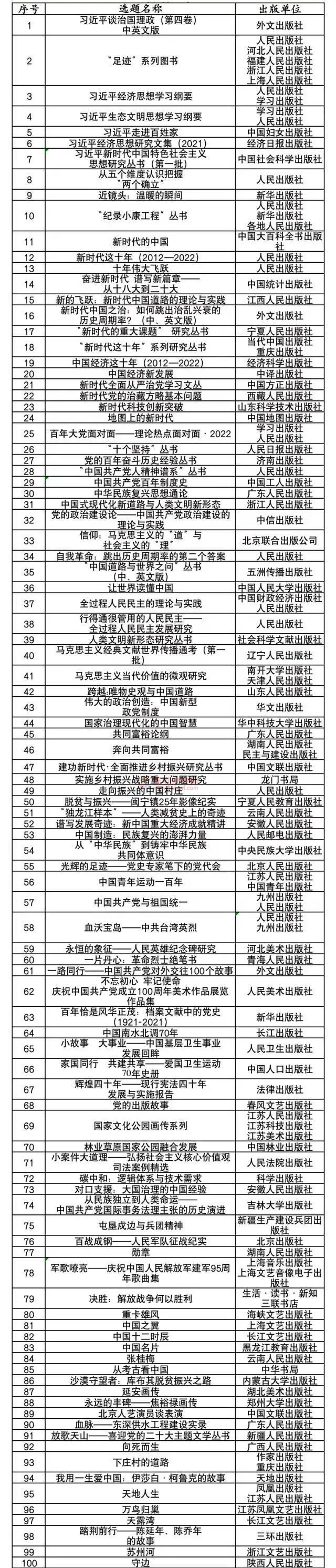 9月7日,中央宣傳部辦公廳印發通知,公布2022年主題出版重點出版物選題入選名單。