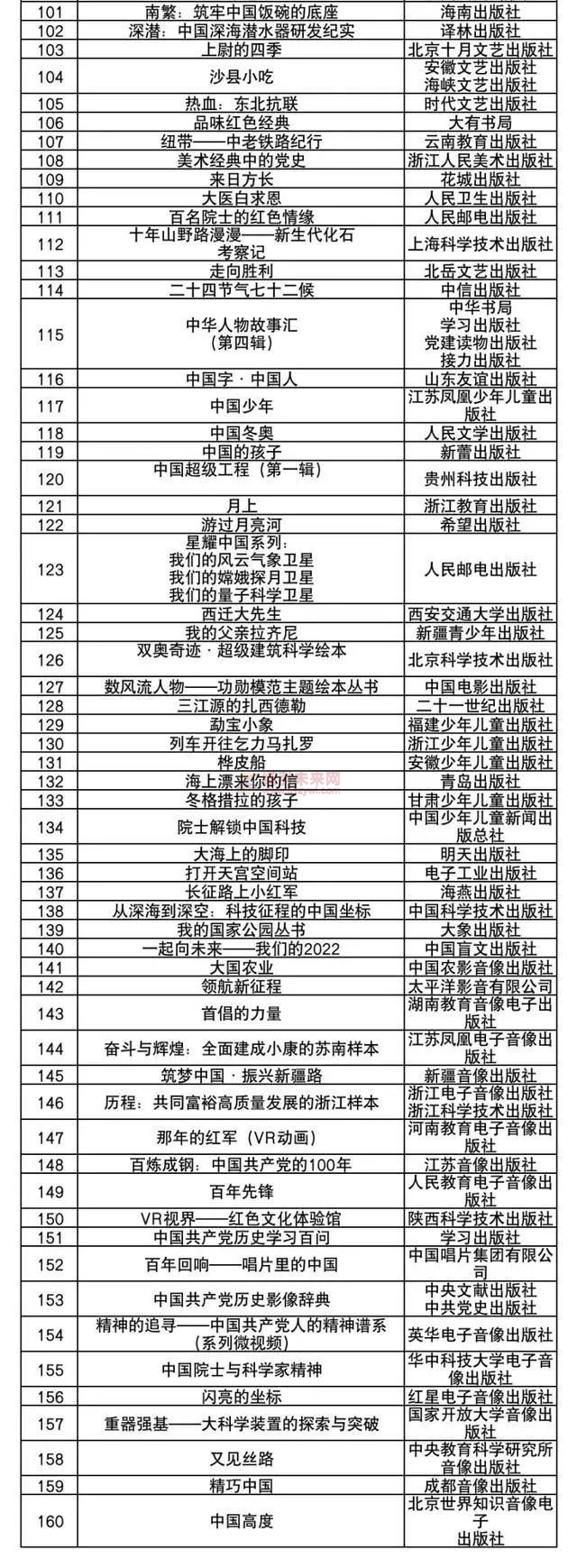 此次各地區各部門各出版單位精心組織報送主題出版選題2240種,經評選論證,最終確定2022年主題出版重點出版物選題160種,其中圖書選題140種、音像電子出版物選題20種。