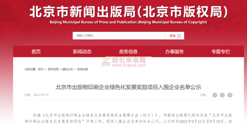 北京市出版物印刷企業綠色化發展獎勵項目入圍企業名單