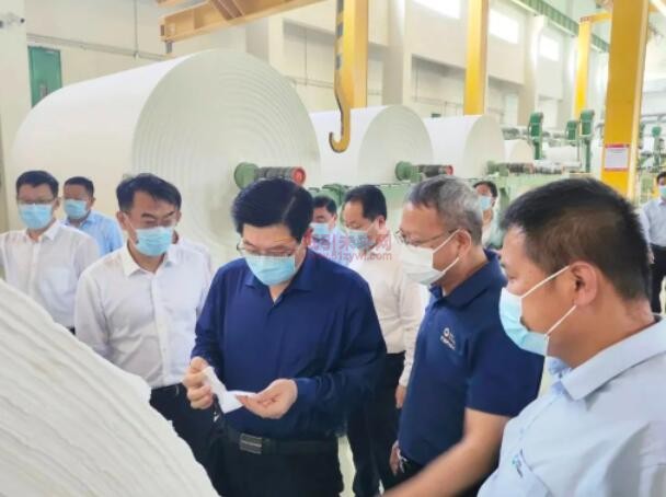 楊留星一行到公司后,直奔生活紙車間現場,實地察看車間分切、后加工等試生產情況,與公司陪同人員和車間管理人員深入交流。楊留星對公司新項目非常關心,詳細詢問項目建設進度、產品市場、運營發展等情況,并就后續規劃項目進度進行了解。