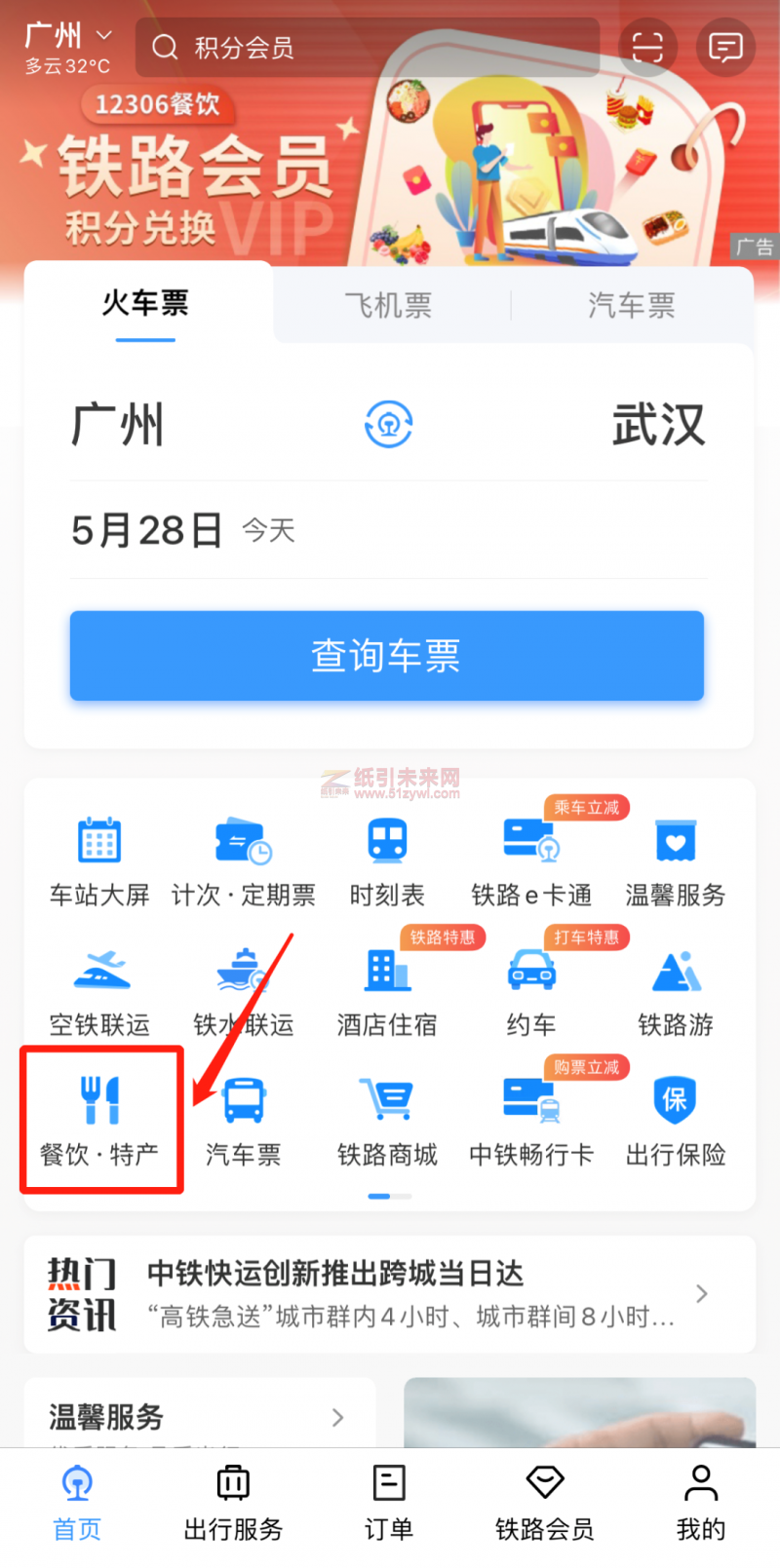 12306APP點(diǎn)擊“列車自營”
