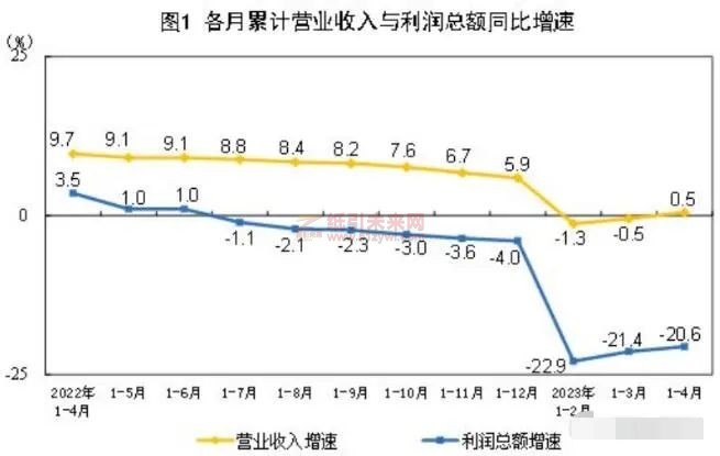紙引未來網訊5月27日,國家統計局公布了2023年1-4月份全國規模以上工業企業利潤情況。數據顯示,全國規模以上工業企業在1-4月份共實現利潤總額20328.8億元,同比下降20.6%。