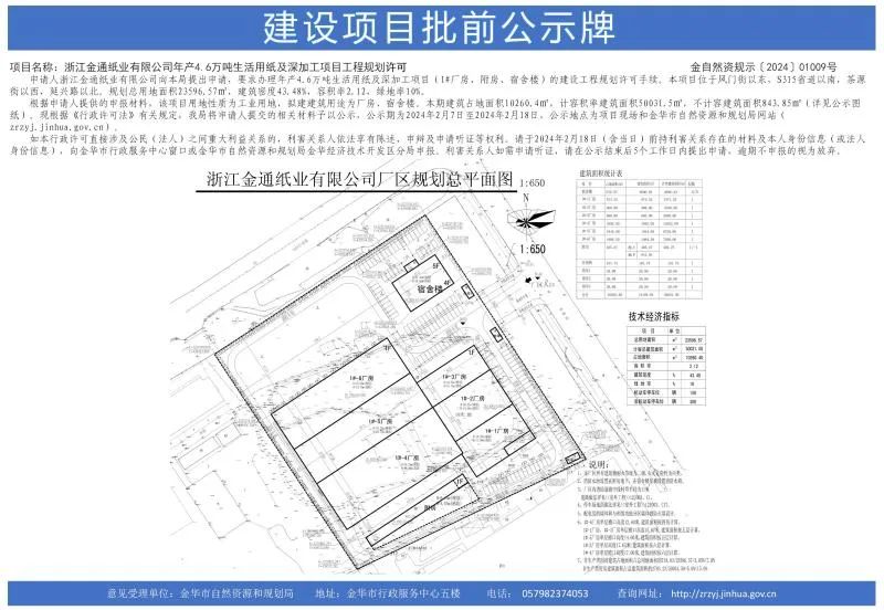 近日,浙江省金華市開發區資規分局公布浙江金通紙業有限公司辦理年產4.6萬噸生活用紙及深加工項目工程許可批前公示。