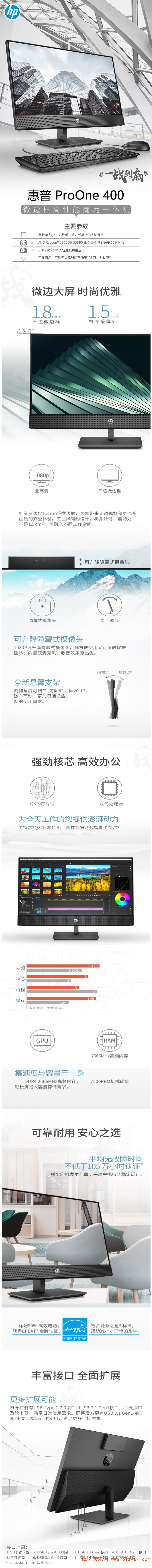 惠普 HP商用一體機(jī)ProOne 400 G4 20 HD+ NT AiO New Core i5-8500T(2.1G/9M/6核)/4G DDR4 2666/1TB(2.5”,SATA)/超薄SuperMulti DVDRW/Windows 10 Home 64位/USB鍵盤/USB Optical 鼠標(biāo)/100萬像素(附帶隱私擋片)/內(nèi)置麥克風(fēng)/內(nèi)置商 業(yè)級(jí)音響/90W 89%高效節(jié)能電源/4*USB3.1 Gen1/ 1*USB Type-C 2.0/20" TN寬屏LED背光防眩光液晶顯 示器(1600