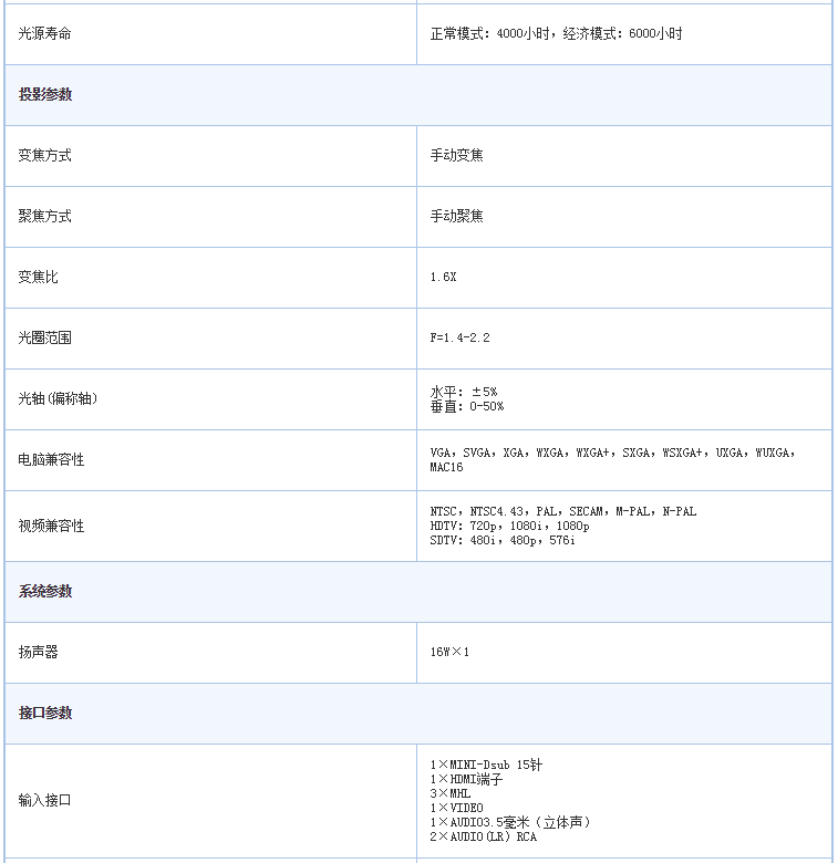 2. ★燈泡300W,壽命正常模式4000小時(shí)/ECO 6000小時(shí);高性能過濾網(wǎng)免維護(hù)時(shí)間1萬小時(shí);