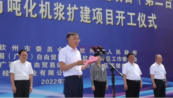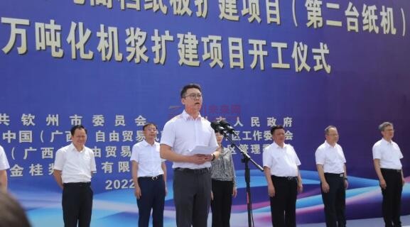 欽州市委書記、廣西自貿試驗區欽州港片區黨工委書記林冠表示:金桂漿紙二期第二臺紙機和年產75萬噸化機漿擴建項目同時開工,是以實際行動貫徹落實全國穩住經濟基本盤和自治區黨委召開的穩住全區經濟基本盤會議精神的具體行動;并肯定了金桂漿紙頂住疫情帶來的巨大壓力,如期推進二期工程建設,扎實開展三期前期工作,并由此對促進整個經濟發展作出的貢獻。