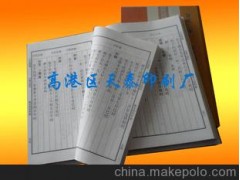 高港區天泰印刷廠位于泰州市城南,地理位置優越,交通方便快捷,南有江陰大橋,西鄰國際通道南京祿口機場,前身系高港區團結印刷廠,成立已有二十年之久,系高港區定點印刷企業,主要從事印刷品的生產與加工,本廠常年為各行業提供各類印刷品的印刷。品種有:宣紙印刷,家譜印刷,族譜印刷, 不干膠、送貨單、發貨單等銷售用單據;生產管理、企業管理用的各類表單;財務管理用的各類票據、憑證;彩頁樣本、說明書;提供無碳復寫紙印刷等。