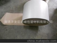 圖片顯示成品基布為65克/平米的全新料編織布。基紙為牛皮紙。亦可根據(jù)客戶要求復(fù)合各種克重的皺紋紙、半木漿、全木漿紙。寬度在130以內(nèi)的各種尺寸。(下圖為15公分寬的成品)
